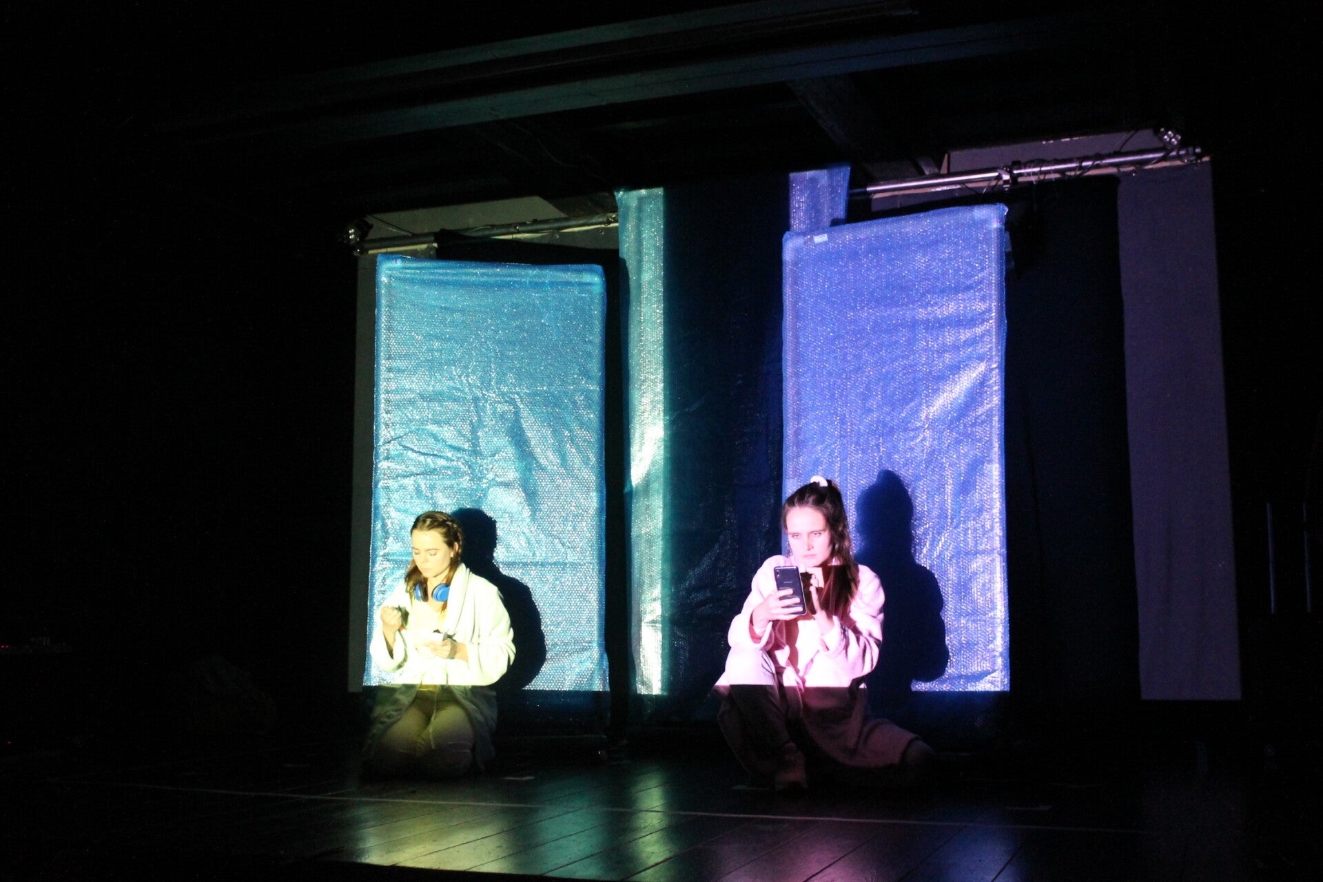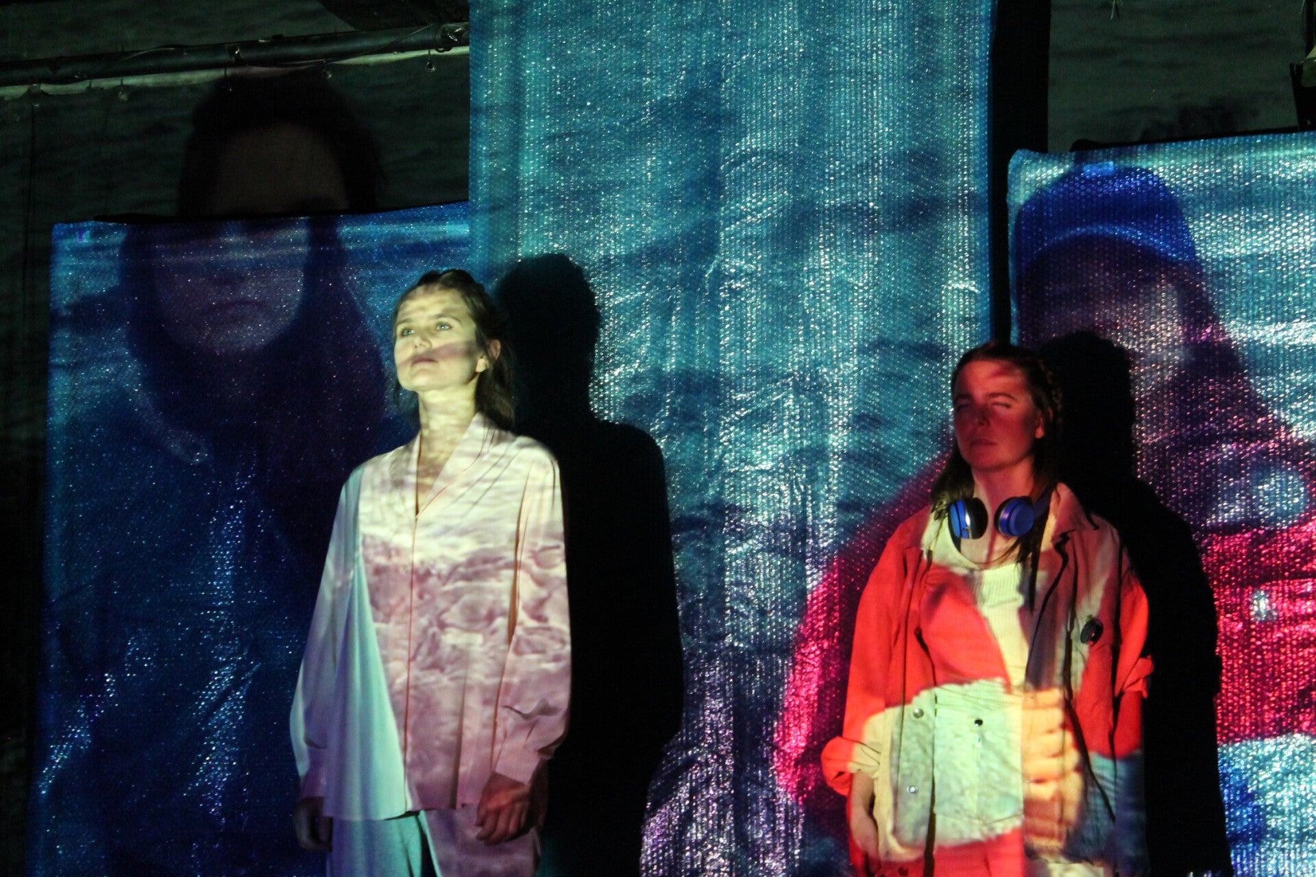 Cette écriture se veut fragmentaire et sensorielle, presque contemplative, deux temps s’entremêlent et nourrissent le concret du plateau pour faire émerger un récit à plusieurs médiums. Le temps du théâtre comme retranscription d’un présent incisif et fidèle qui ne peut tricher ; Et le temps du numérique, où les sœurs viennent rassembler la matière-souvenir pour raconter cette rencontre. Ces deux espaces distincts marquent pour moi la distance entre ce que nos deux personnages ressentent et ce qu’elles vivent, entre ce qu’elles racontent et la réalité des faits, entre leurs souvenirs et la vérité de l’instant. Distance nécessaire à l’élaboration d’un récit à dimension complète et intime. Comment on se rencontre en tant que soeur, comment on se raconte en tant que femme. Voilà ce que j’ai voulu explorer, travailler, partager, et ancrer dans un texte porté à la scène pour y naviguer tous.tes ensemble.